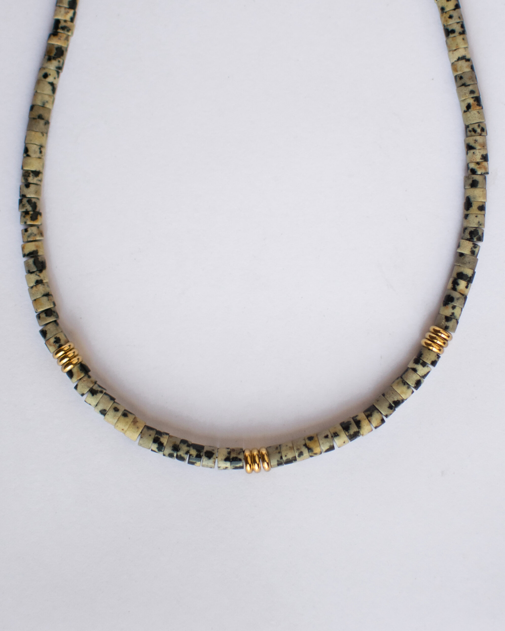 Collier délicat en pierre naturelle et acier inoxydable pensé pour rajouter une touche de style à ton quotidien, résistant à l’eau et au temps.