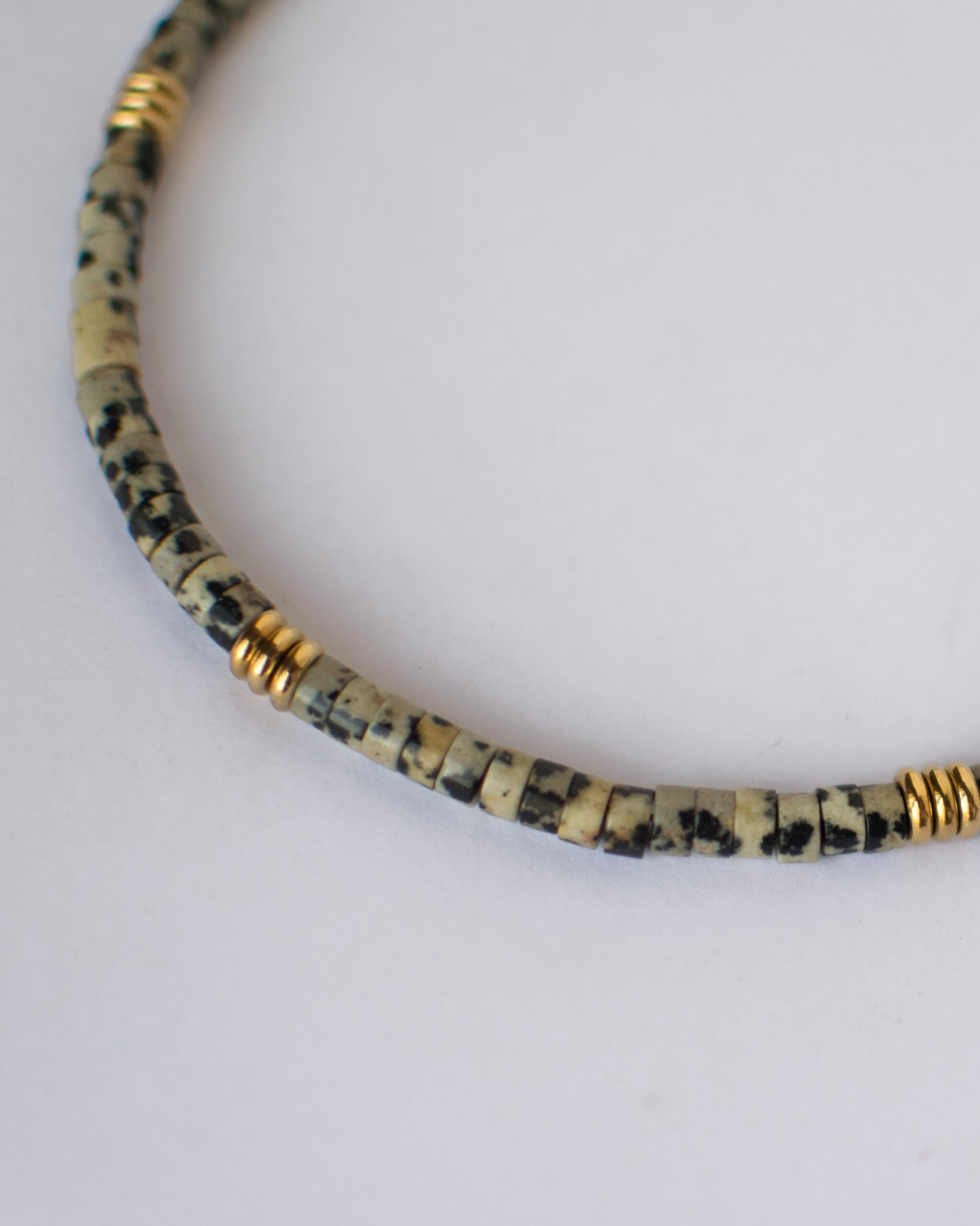 Matériau : pierres naturelles : Jaspe dalmatien, acier inoxydable doré